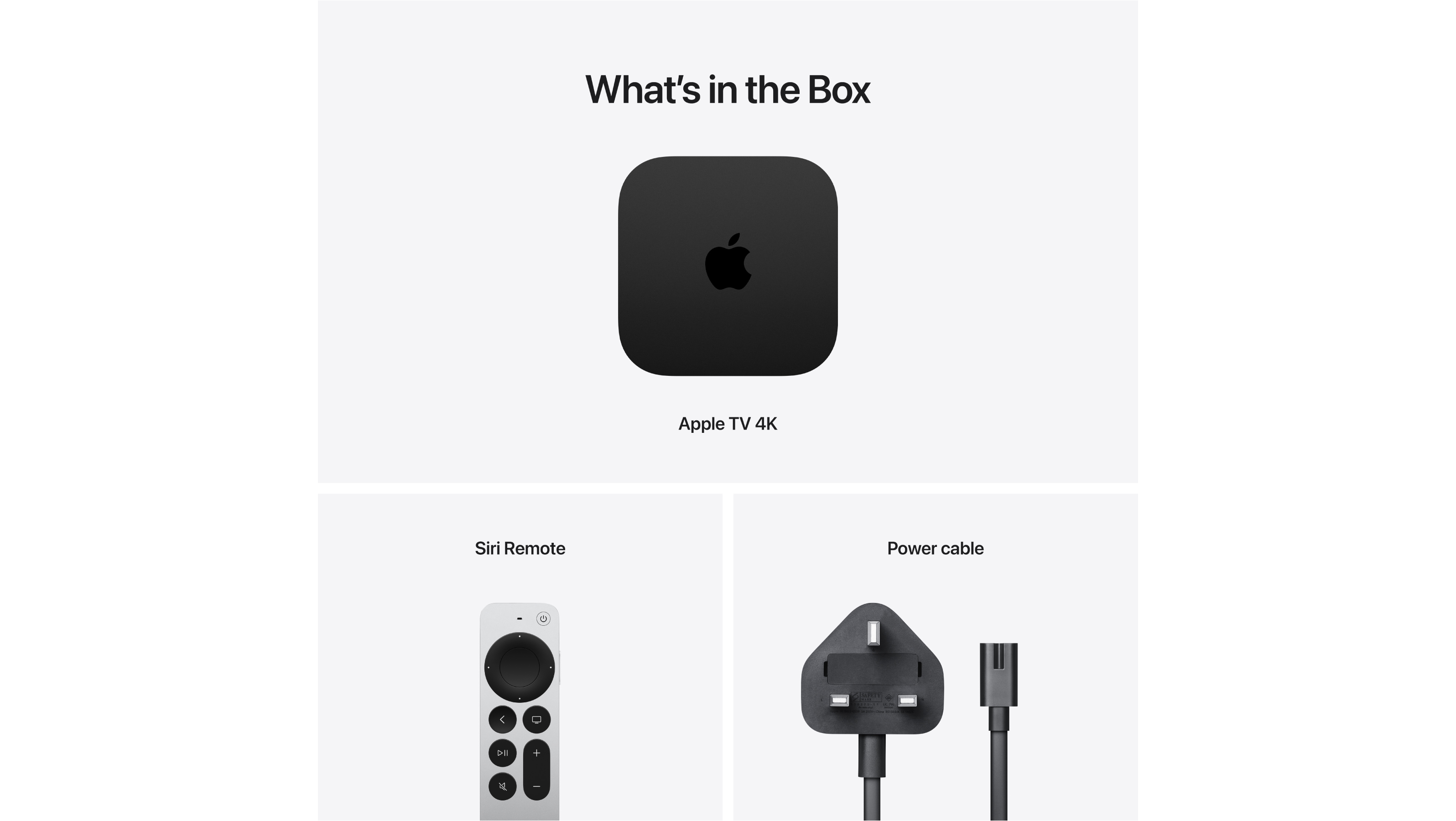 4K Dolby Vision and HDR10+ for vivid picture qualityDolby Atmos for three-dimensional, theatre-like sound1Incredible power with the A15 Bionic chipSiri Remote brings precise control via touch‑enabled clickpadApple Original programmes and movies from Apple TV+2The latest programmes, movies, sport and live TV, all in the Apple TV app3More ways to enjoy your TV with Apple Arcade and Apple Music2Use AirPlay to share photos, videos and more from your iPhone, iPad and Mac on your TV4Private listening with up to two sets of AirPodsActs as a home hub to connect and control smart home accessories
