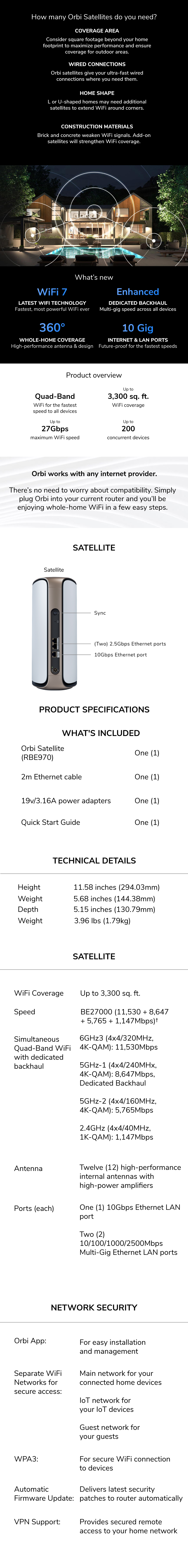 NETGEAR ORBI 970WF7 ADDON BE27000WHT RBE970