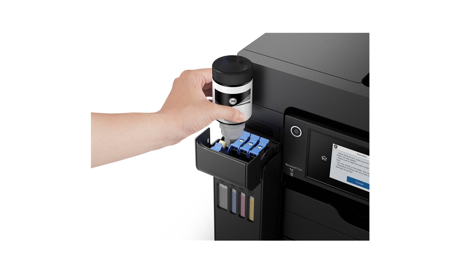 Don’t compromise on cost as you print. With Epson’s EcoTank L15150, you’ll be able to save costs as each set of bottle inks has an ultra-high yield of 7,500 for black and 6,000 pages for colour.