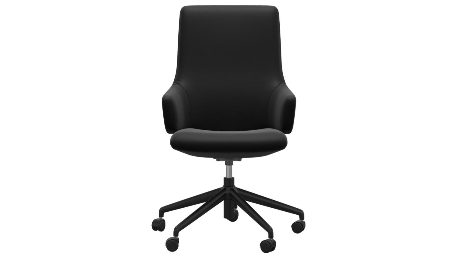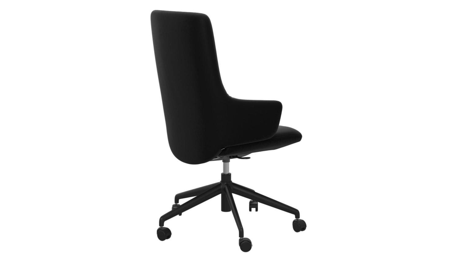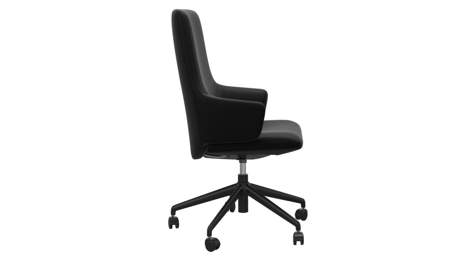 Stressless® Home Office chairs have a light design that will blend in with any style. The chairs give you the possibility to effortlessly shift position during the day. The seat and back follow your movements and offer good support. Lean back, and the backrest will recline while the seat moves forward in a coordinated movement. A discrete flexibility in the seat offers good support and reduces the pressure on your lower thighs as you lean forward. The large choice of covers makes it easy to match with the rest of the interior, and you can even get dining chairs with the exact same cushion design and covers. The wheels on the base make it easy to move around, and there is a lever under the seat that allows you to adjust the seat height by up to 12 centimetres.