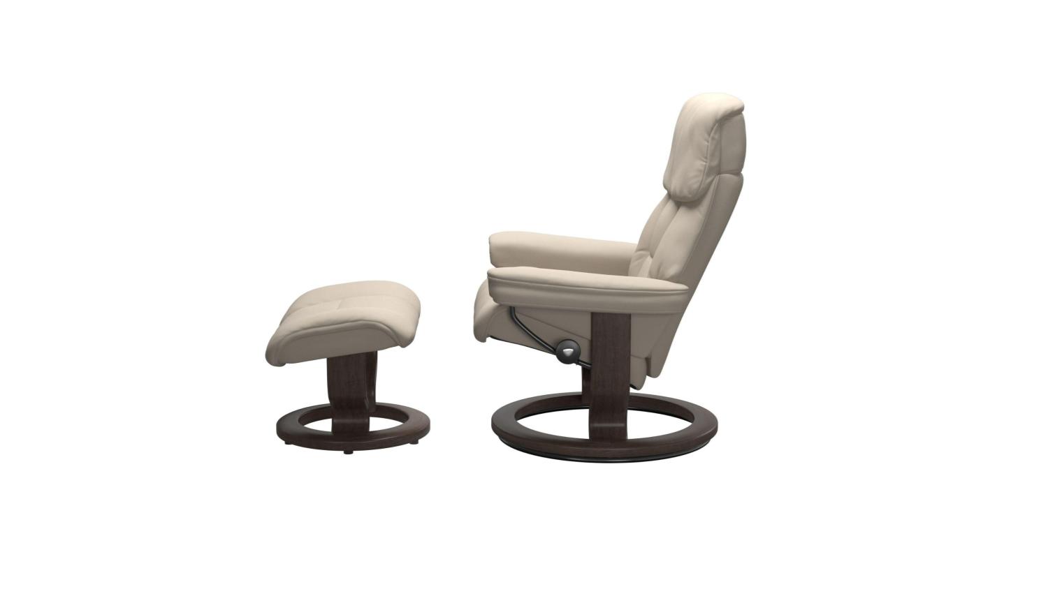The Stressless Ruby Classic Base Recliner with Footstool (Fog/Wenge) will certainly be the most in-demand seating in the house. With contours that are softly rounded, yet surprisingly sophisticated, the Ruby offers plush seating for any room. All Stressless comfort features are of course in place.