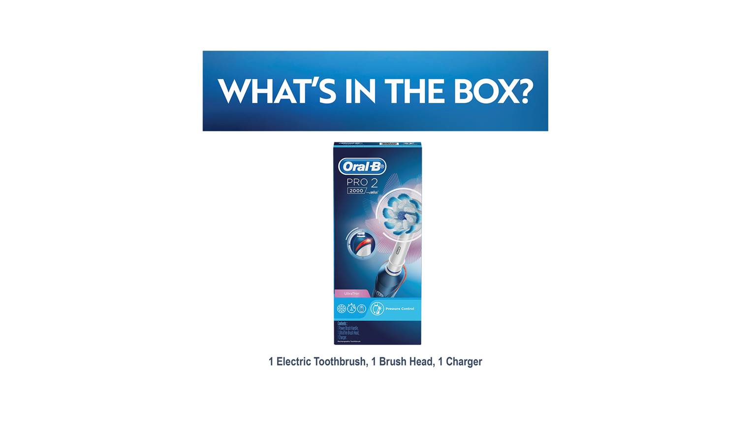 Experience Oral-B PRO 2 2000 from Oral-B, the #1 brand recommended by dentists worldwide. The sleek handle of the PRO 2 2000 electric toothbrush helps you brush like your dentist recommends: It helps you brush for 2 minutes with the professional timer and it notifies you every 30 seconds to change the area you are brushing. While you are just moving the brush around your mouth, Oral-B’s unique, round head does all the rest. It removes up to 100% more plaque than a standard manual toothbrush for healthier gums, and it begins whitening your smile from the first day of brushing by removing surface stains. Not only this, but the toothbrush helps you protect your delicate gums with Pressure Control technology that alerts you to be gentler if you brush too hard. With the Pressure Sensor, the Oral-B PRO 2 2000 toothbrush is the must-have brush for everyone who wants to switch to an electric toothbrush and improve their oral health. No wonder Oral-B is the #1 recommended brand by dentists worldwide.