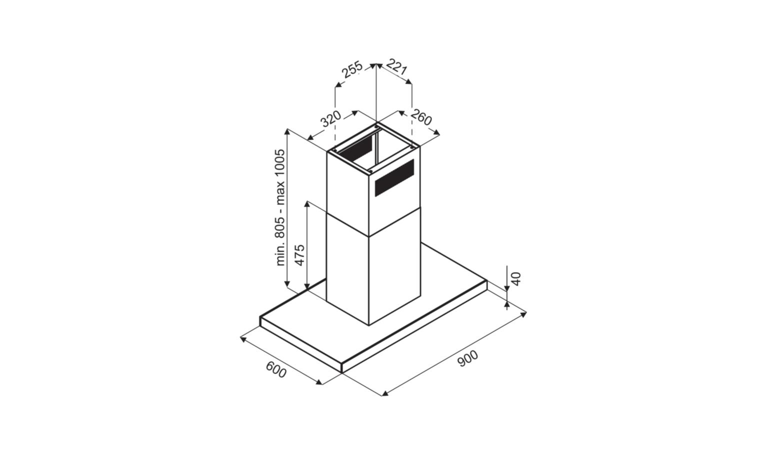 - Decorative island hood 90 cm wide