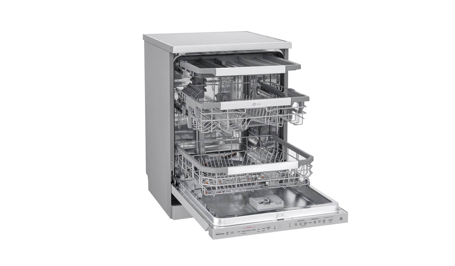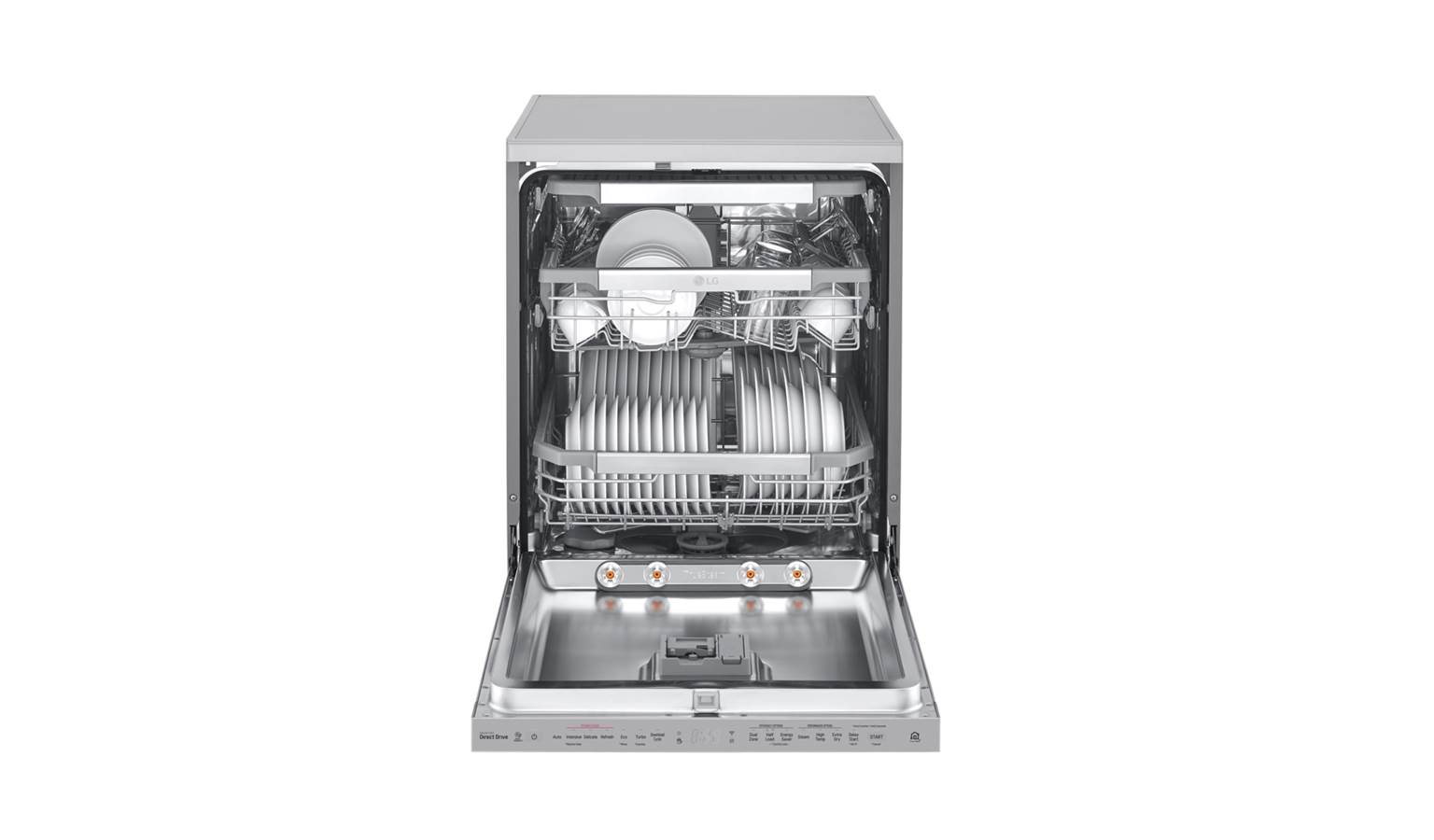 LG DFB325HS QuadWash Steam Dishwasher uses TrueSteam technology to give you sparkling dishes with less water spots while it's QuadWash technology ensures that your dishes are clean from every angle. It achieves all of this with a quiet, efficient and reliable Inverter Direct Drive.