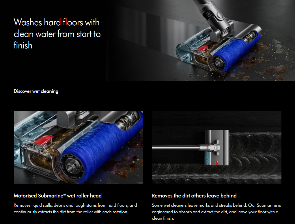 Our most powerful, lightweight cordless vacuum. Washes hard floors.