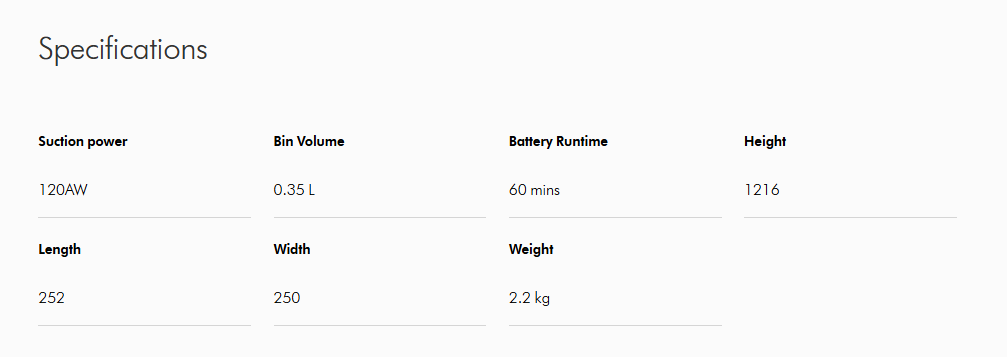 Dyson’s patented 11 cyclones capture and separate dust and debris, so there’s no loss of suction.