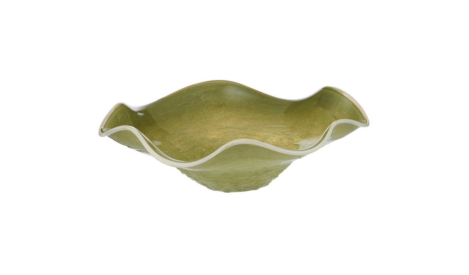 A decorative glass bowl with softly curved edges and a subtle olive‑peach tone. Perfect for serving fruit, snacks, or as a stylish centrepiece.