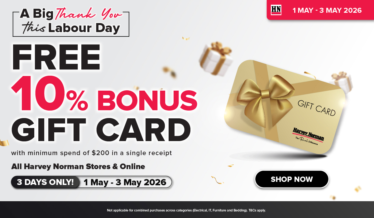 Available for Spin & Sure Win e-Voucher redemptions! 10% Bonus Gift Card with $200 min spend on Electrical products. Excl. promo codes & all instalment plans.