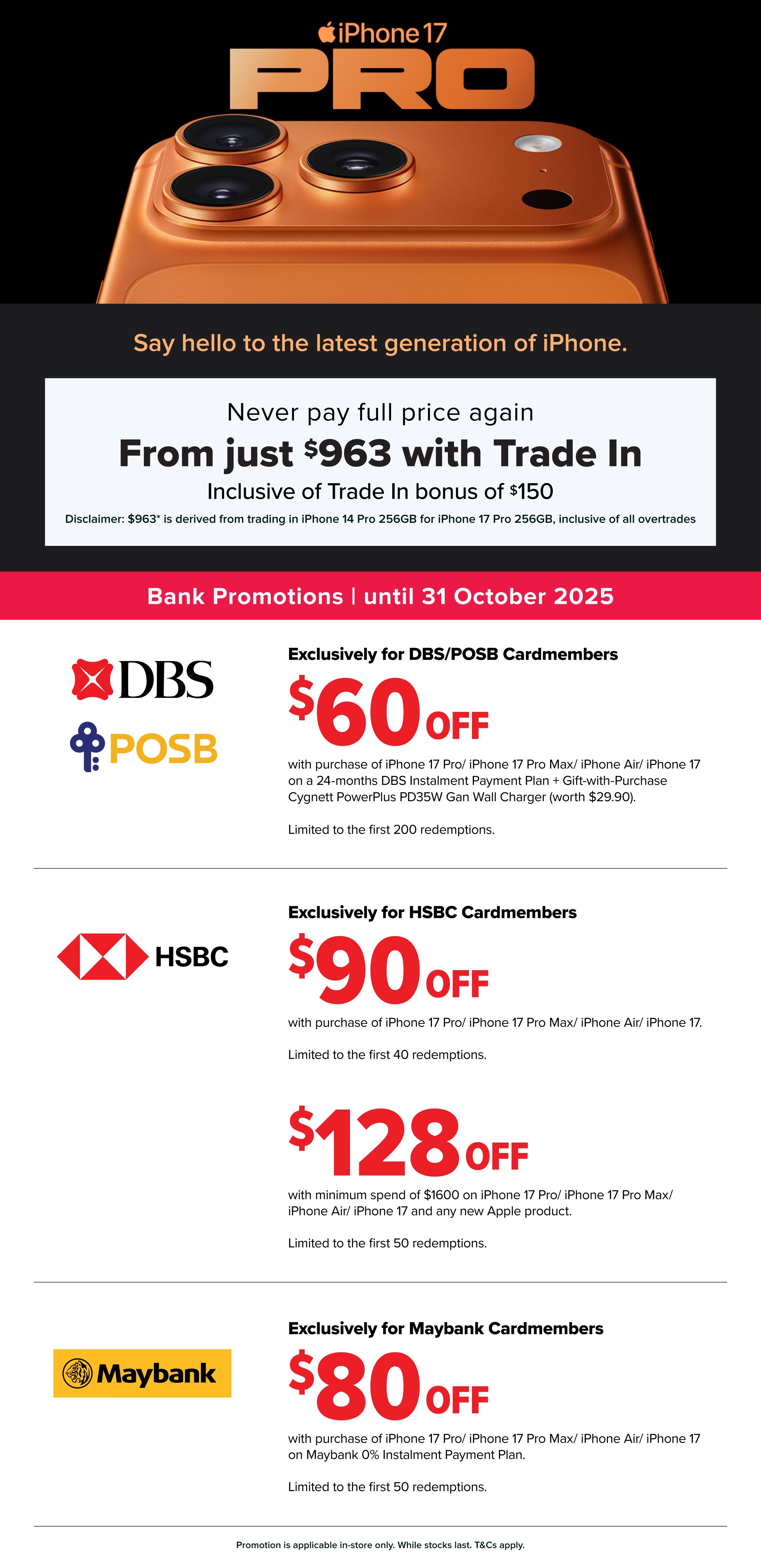 - The bank promos are exclusively applicable to purchases of the iPhone 17 model.