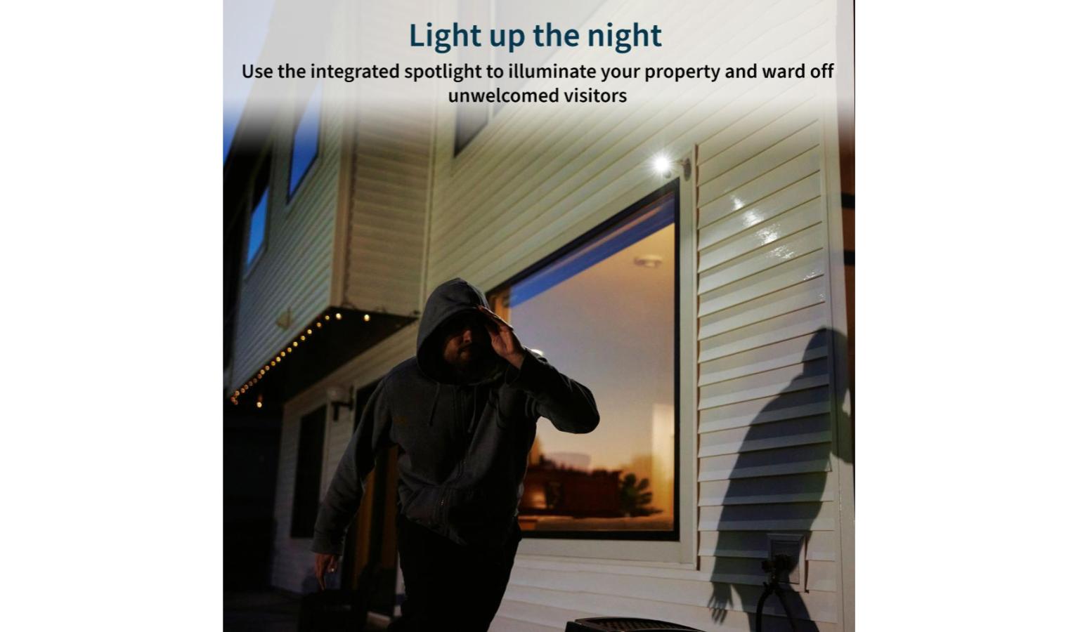 - Light up the night - Ward off unwelcome guests with the outdoor camera using the integrated spotlight. See features like faces or license plates in full color, even at night, with color night vision