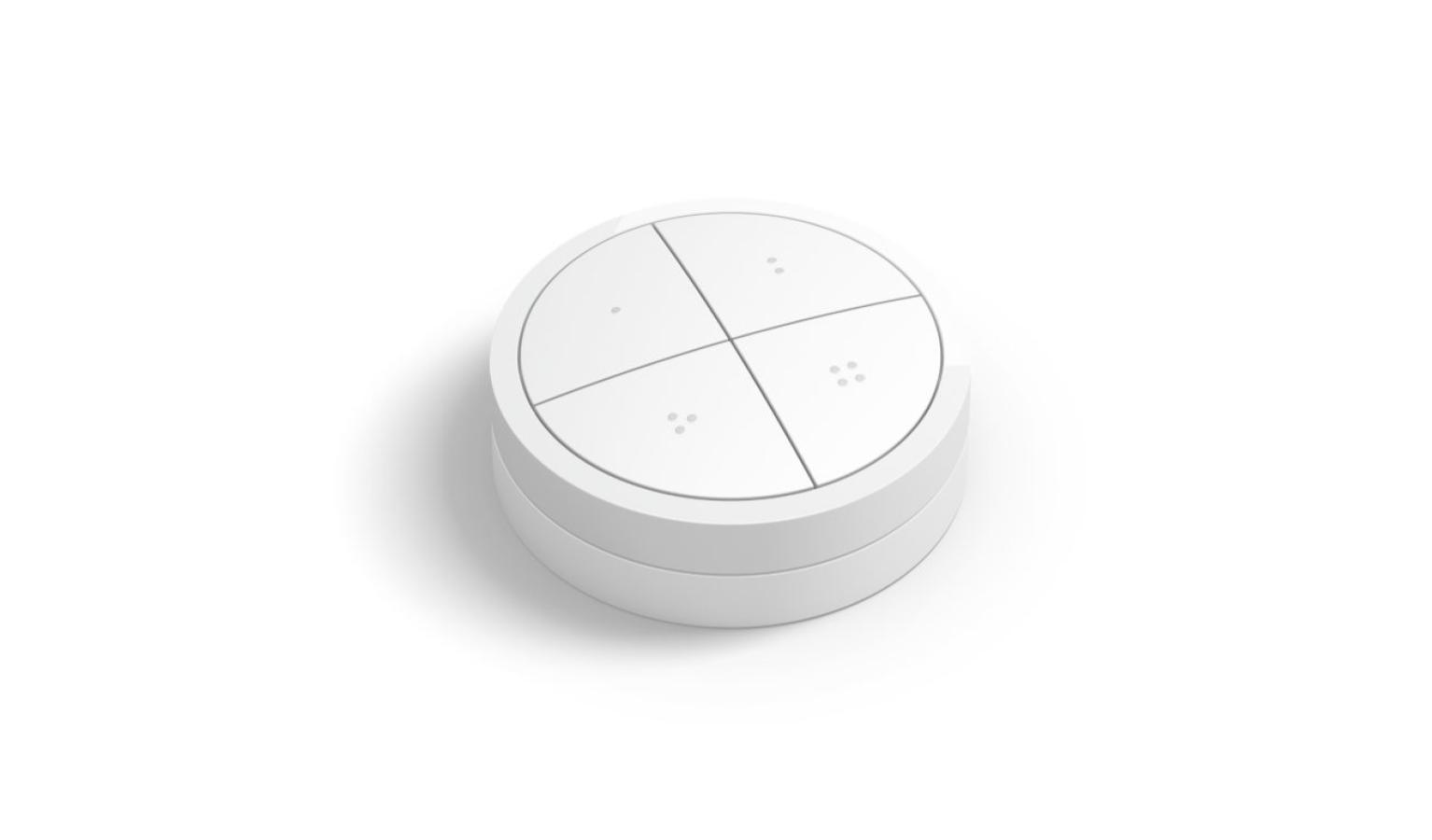 Control up to three Rooms or a Zone with each individual button of the Tap dial switch, available in black or white. Turn the dial to dim and brighten the lights. Mount it to the wall, place it on a magnetic surface, or use it as a remote control.